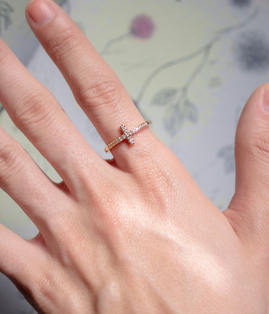 Anillo cruz con zirconias